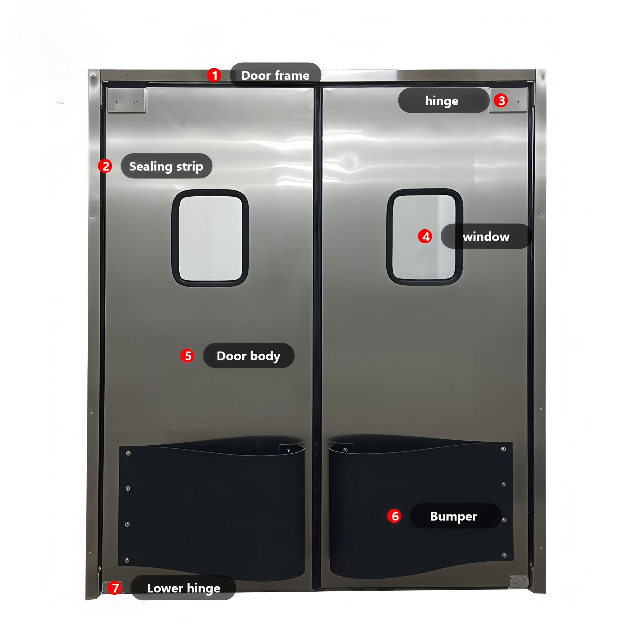 Equipped with high-strength springs or hinge reset mechanisms, the door automatically returns to its original closed position after impact without manual intervention. This prevents airflow disruptions, dust infiltration, or material spillage between indoor and outdoor environments due to door displacement.