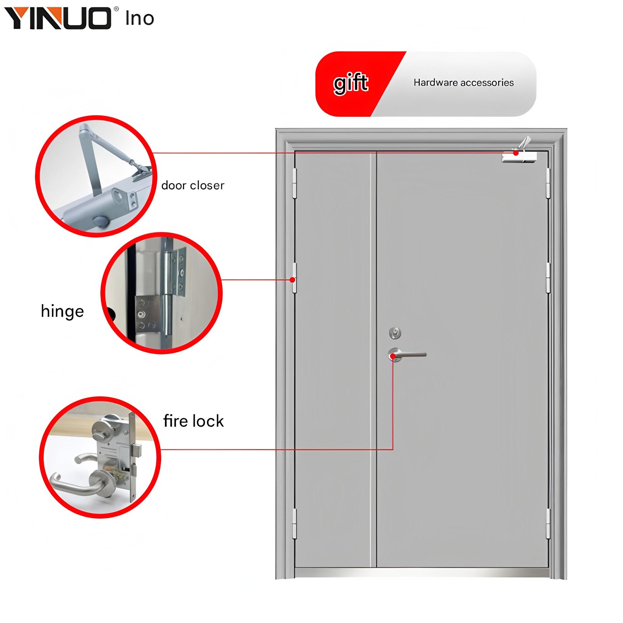2.Standard fire-rated hardware – low failure rate, with a lifespan of 10-15 years under normal conditions.
