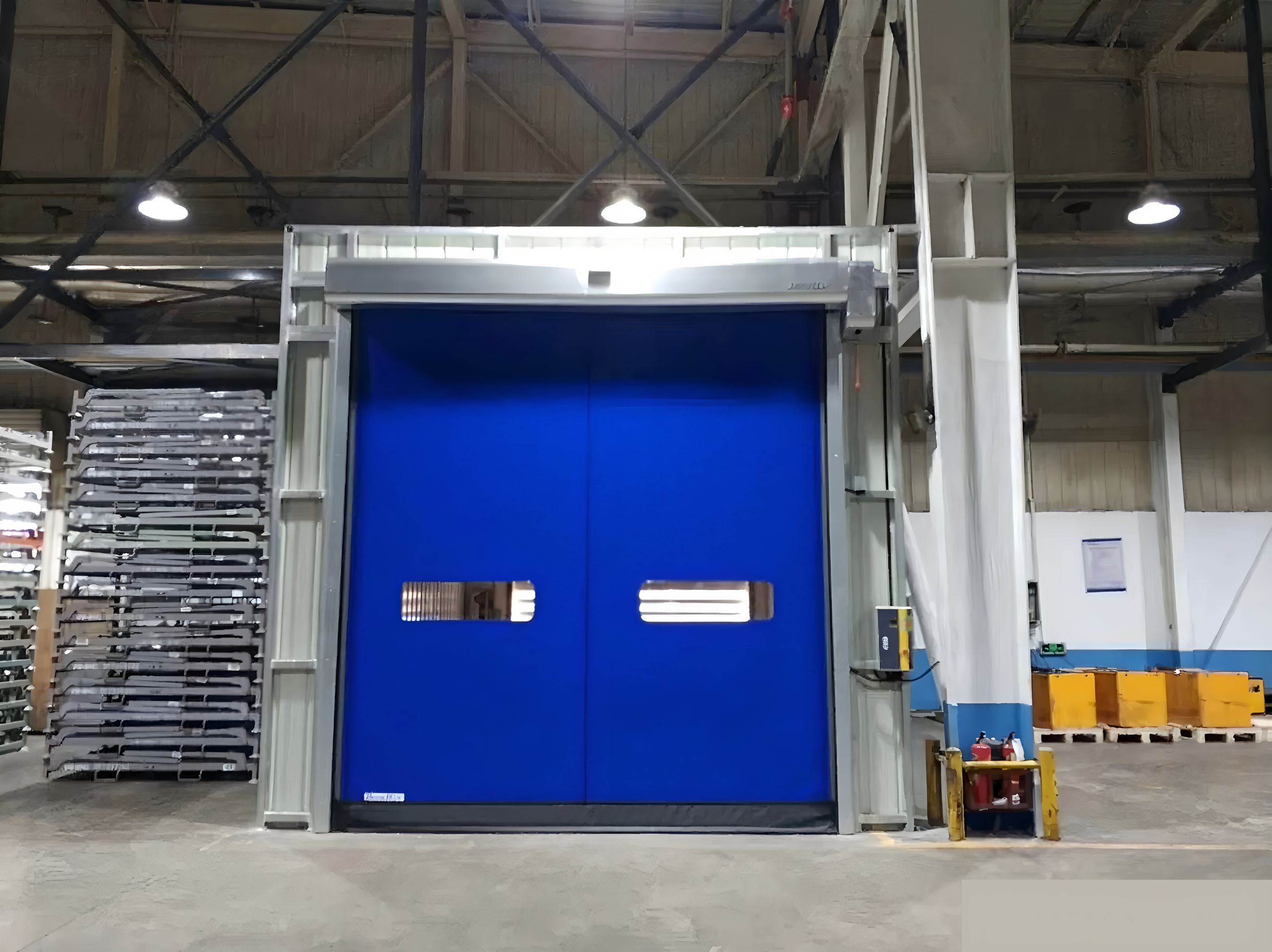 The zippered fast door adopts a high-strength zipper sealing structure combined with a servo motor drive system, enabling the door curtain to rise and fall at speeds of 0.8–1.5 m/s. It provides multiple sealing effects, including dust prevention, insect prevention, thermal insulation, and sound insulation.